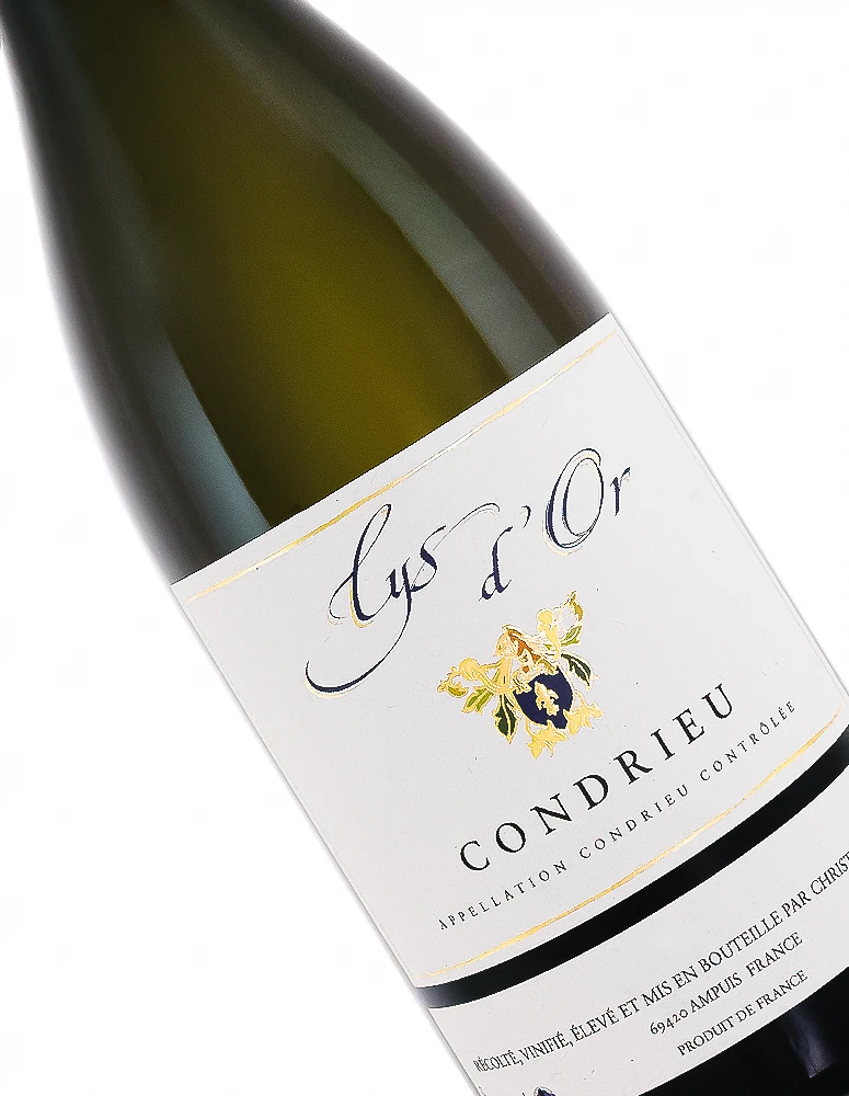Condrieu, the tiny growing region near Côte Rotie is the original home of the global phenomenon Viognier, which was nearly extinct until American winemakers discovered and made their versions in the 1980s and 1990s. This, in turn, revived interest in Condrieu, so that current plantings are estimated at 420 to 540 acres, up from 57 acres in the 1980s. Also spotlighted by Robert Parker, the top producers of Condrieu began making intensely perfumed, potent wines from Viognier which were impressive everywhere but the table because of their assertiveness. It seems that the current styles in vogue have pulled way back in intensity to reveal wines of great beauty, and the Lys d’Or from Domaine Christophe Semaska is a prime example.